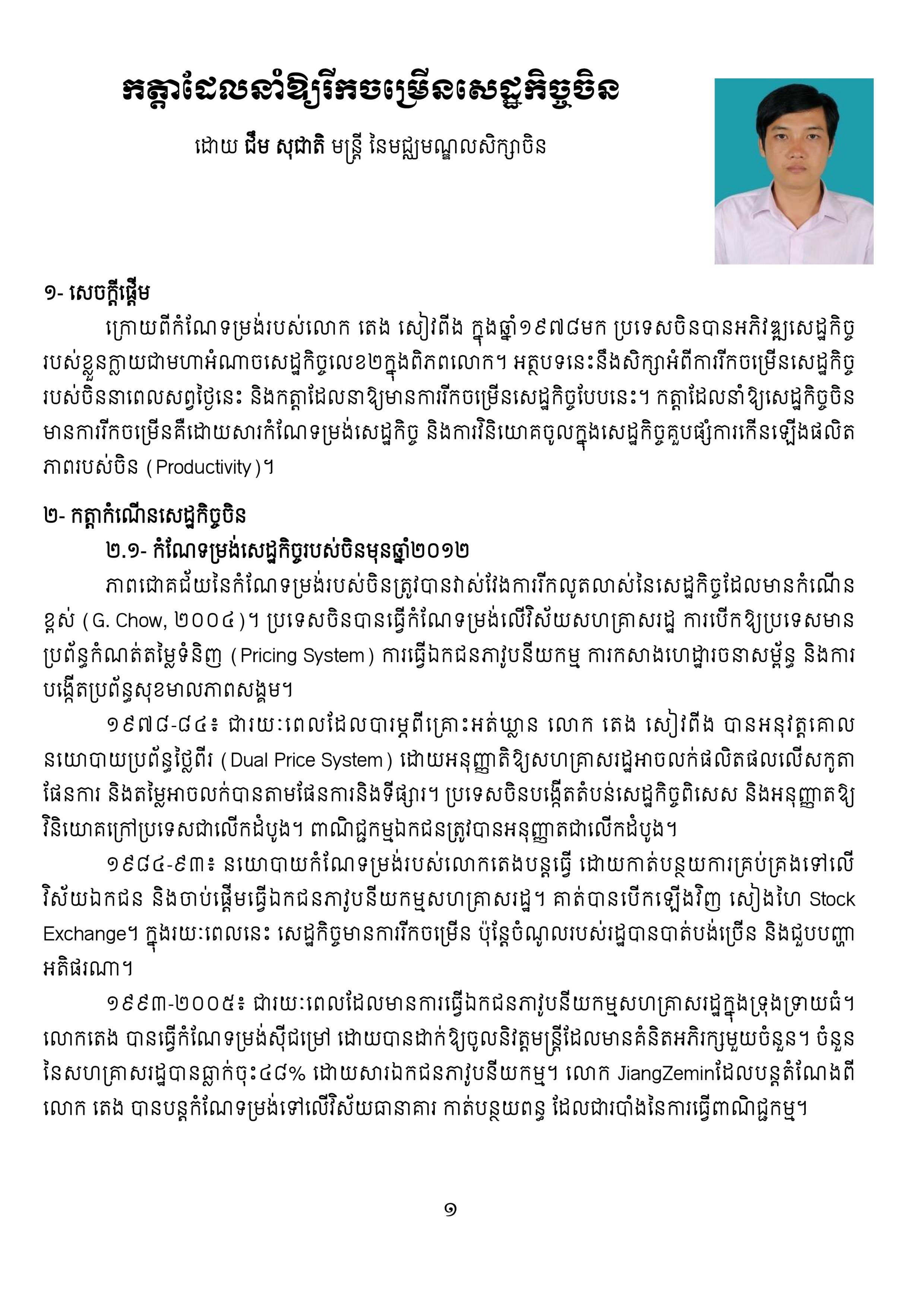 កត្តាដែលនាំអោយរីកចំរើនសេដ្ឋកិច្ចចិន