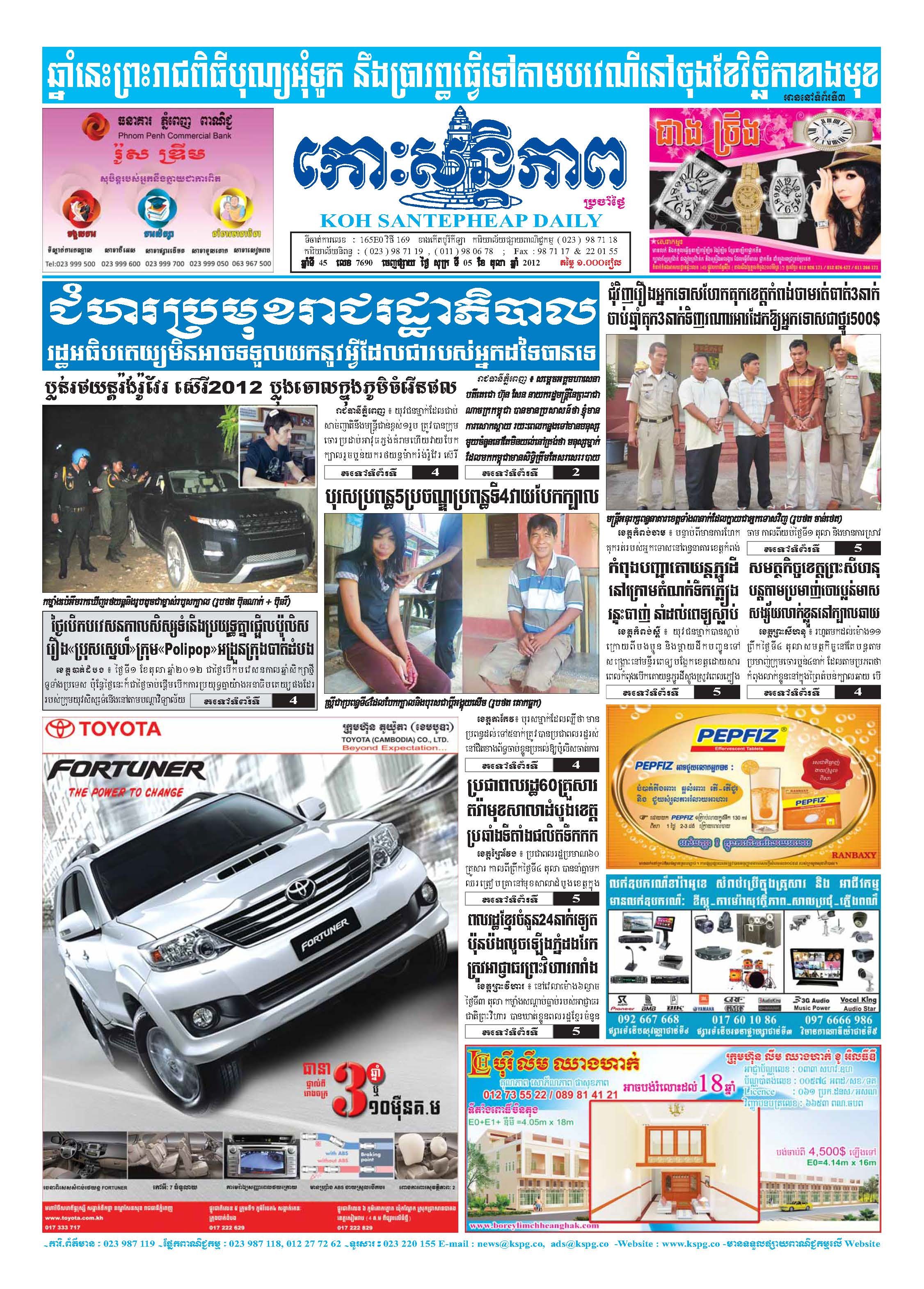 កោះសន្តិភាព ឆ្នាំទី៤៥ លេខ៧៧០៤ ចេញផ្សាយ ថ្ងៃព្រហស្បតិ៍ ទី២៥ ខែតុលា ឆ្នាំ២០១២