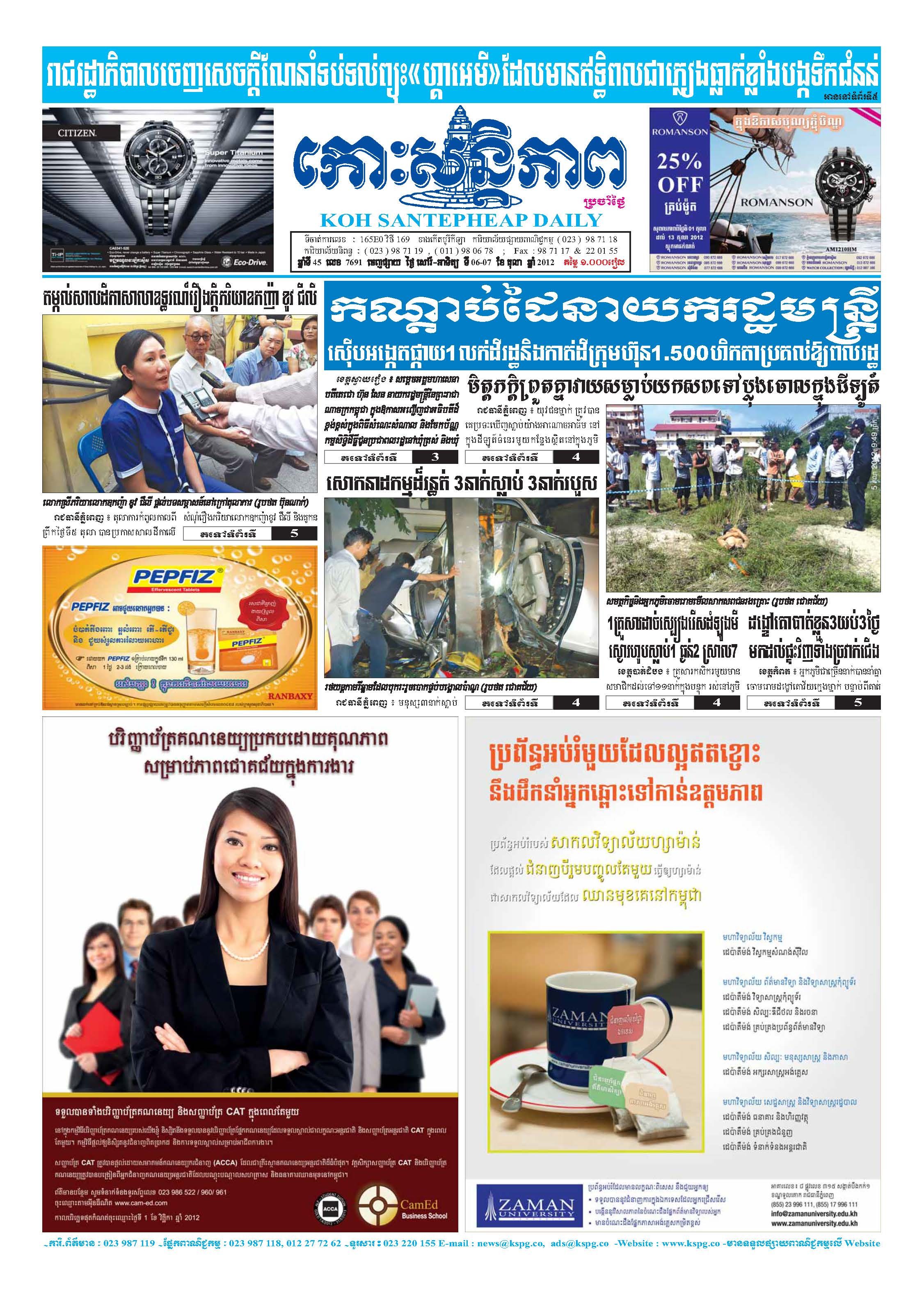កោះសន្តិភាព ឆ្នាំទី៤៥ លេខ៧៥៨១ ចេញផ្សាយ ថ្ងៃព្រហសប្បតិ៍ ទី៣១ ខែឧសភា ឆ្នាំ២០១២