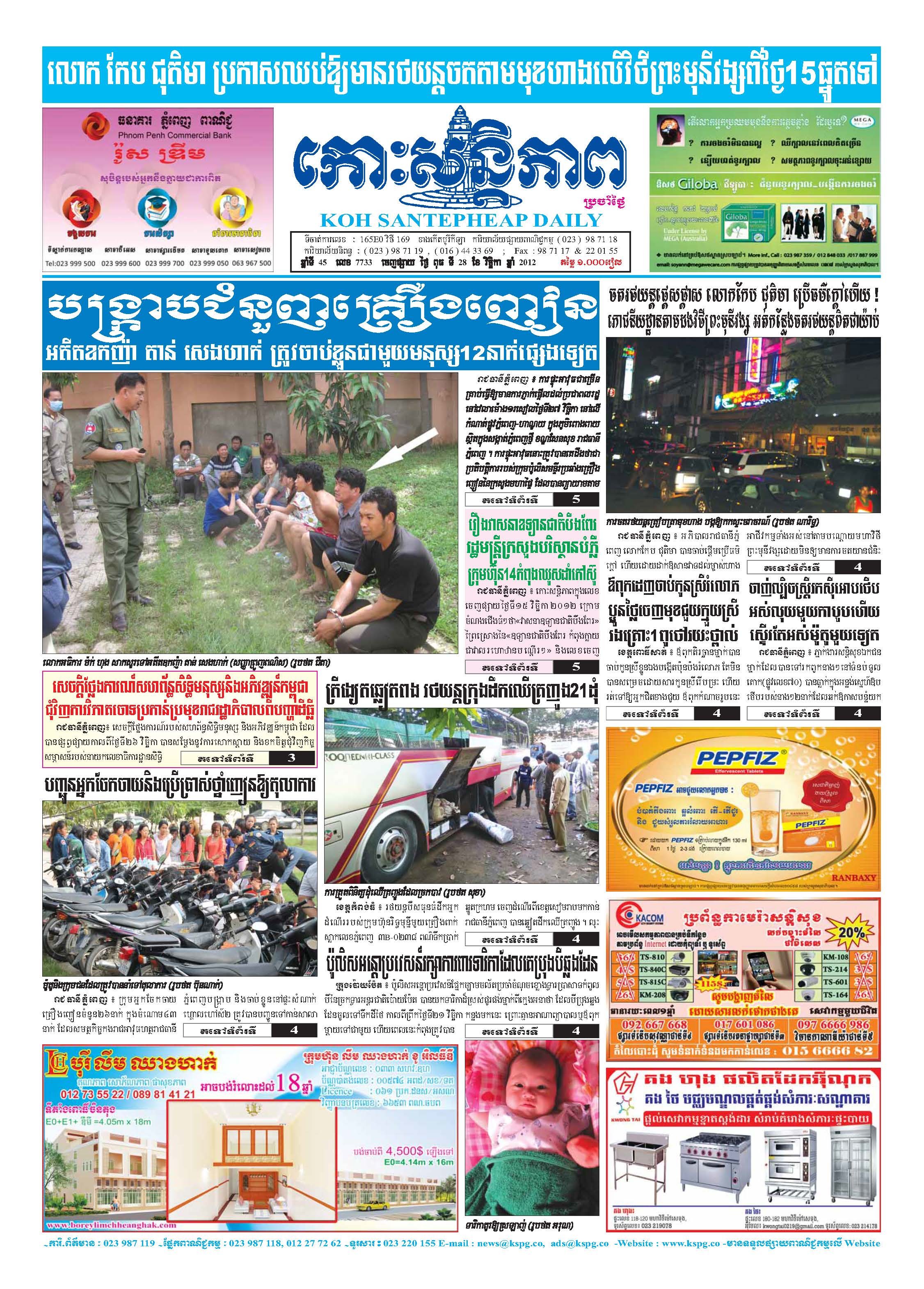 កោះសន្តិភាព ឆ្នាំទី៤៥ លេខ៧៥៤០ ចេញផ្សាយ ថ្ងៃចន្ទ ទី០៩ ខែមេសា ឆ្នាំ២០១២