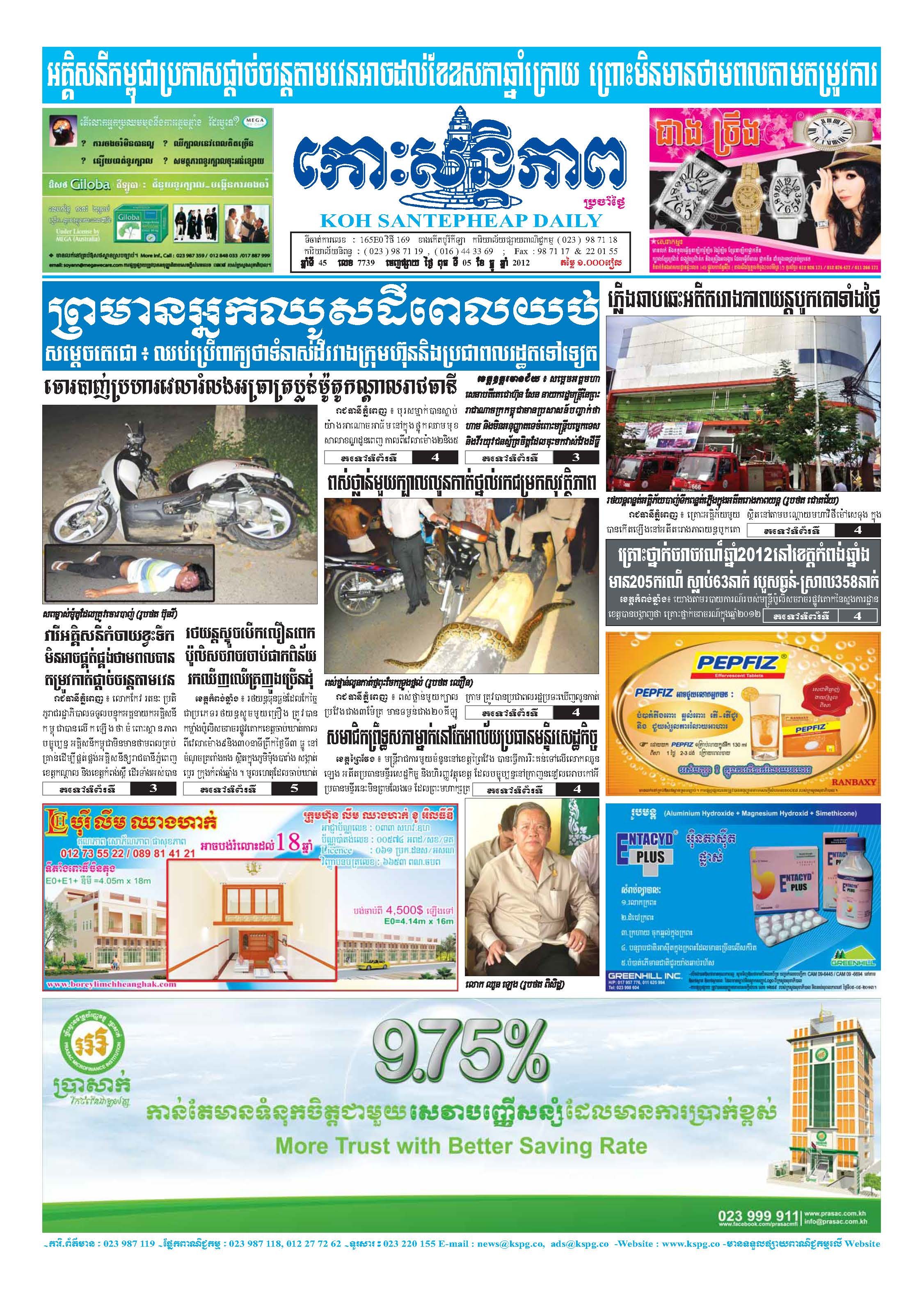 កោះសន្តិភាព ឆ្នាំទី៤៥ លេខ៧៥៧៦ ចេញផ្សាយ ថ្ងៃសុក្រ ទី២៥ ខែឧសភា ឆ្នាំ២០១២