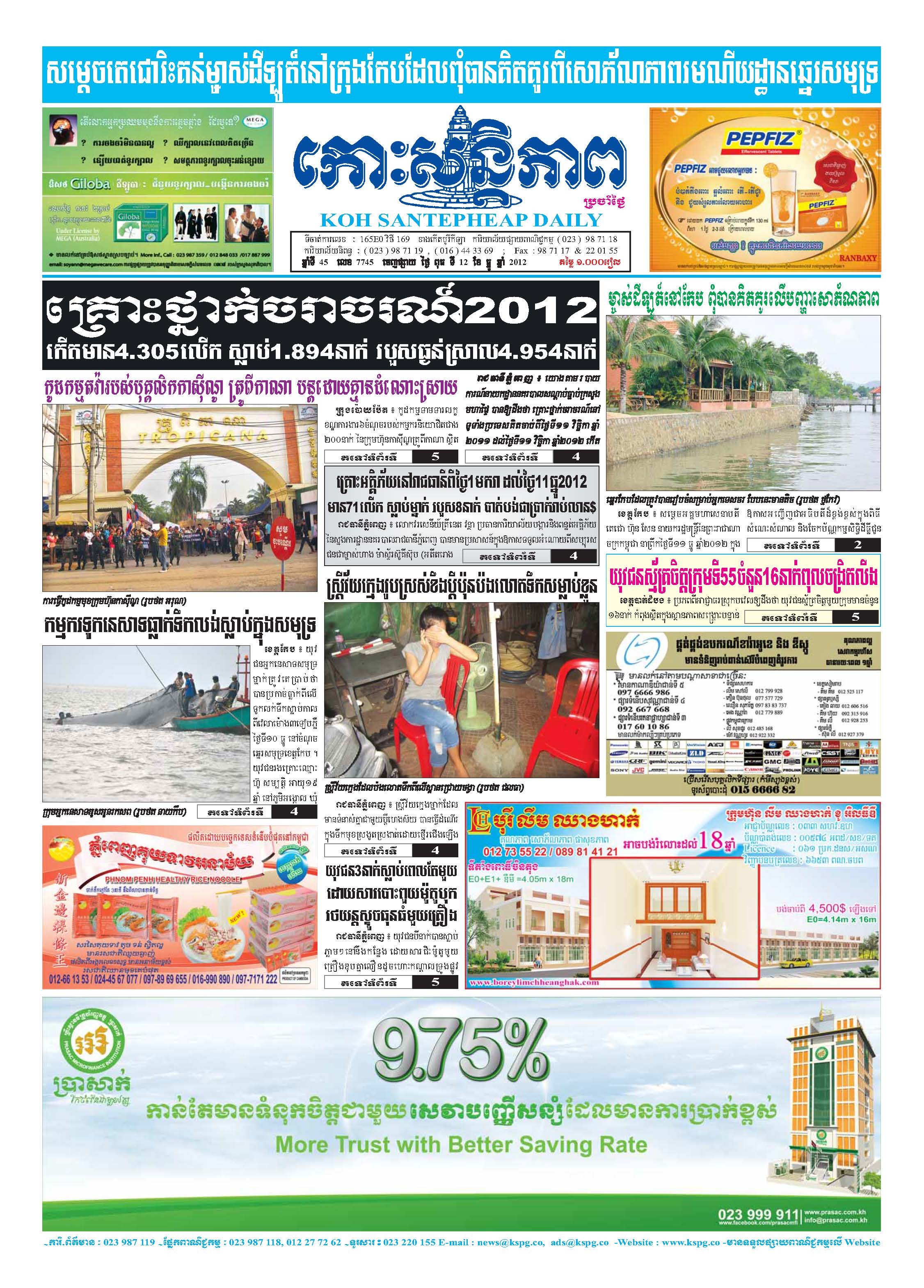 កោះសន្តិភាព ឆ្នាំទី៤៥ លេខ៧៧៤៣ ចេញផ្សាយ ថ្ងៃចន្ទ ទី០១០ ខែធ្នូ ឆ្នាំ២០១២