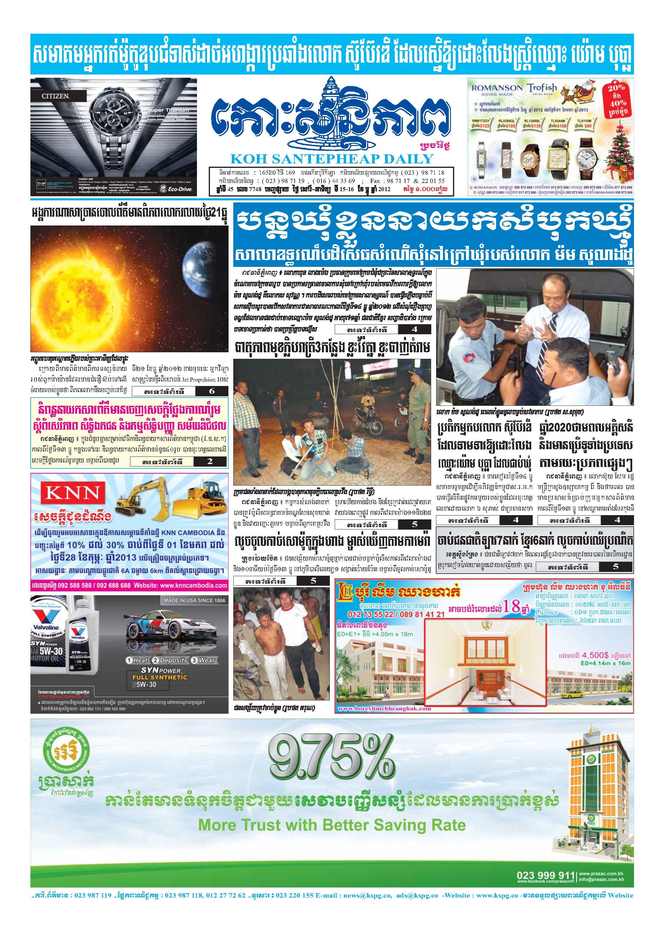 កោះសន្តិភាព ឆ្នាំទី៤៥ លេខ៧៧៥៨ ចេញផ្សាយ ថ្ងៃព្រហស្បតិ៍ ទី២៧ ខែធ្នូ ឆ្នាំ២០១២
