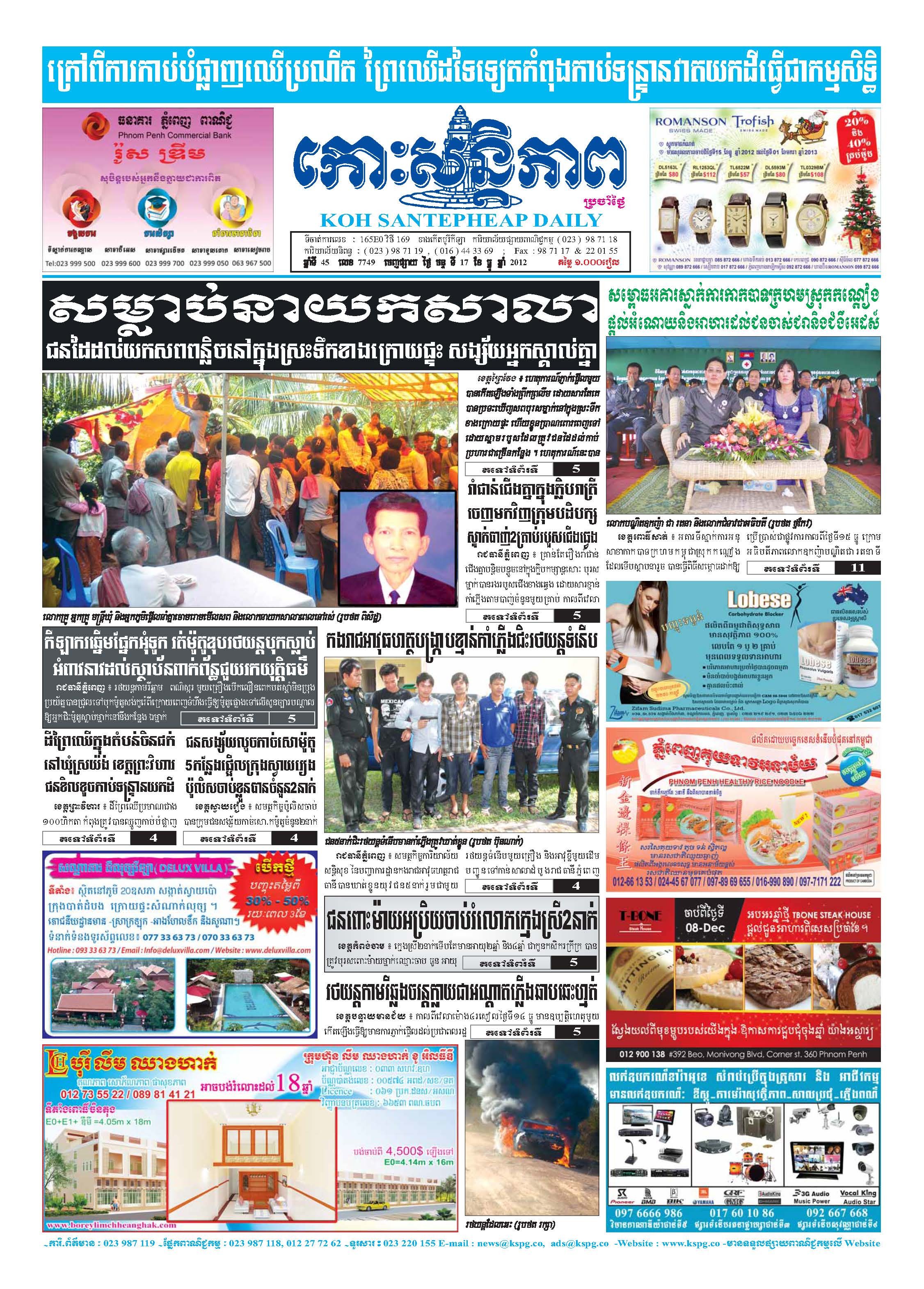 កោះសន្តិភាព ឆ្នាំទី៤៥ លេខ៧៦១៧ ចេញផ្សាយ ថ្ងៃព្រហស្បតិ៍ ទី១២ ខែកក្កដា ឆ្នាំ២០១២