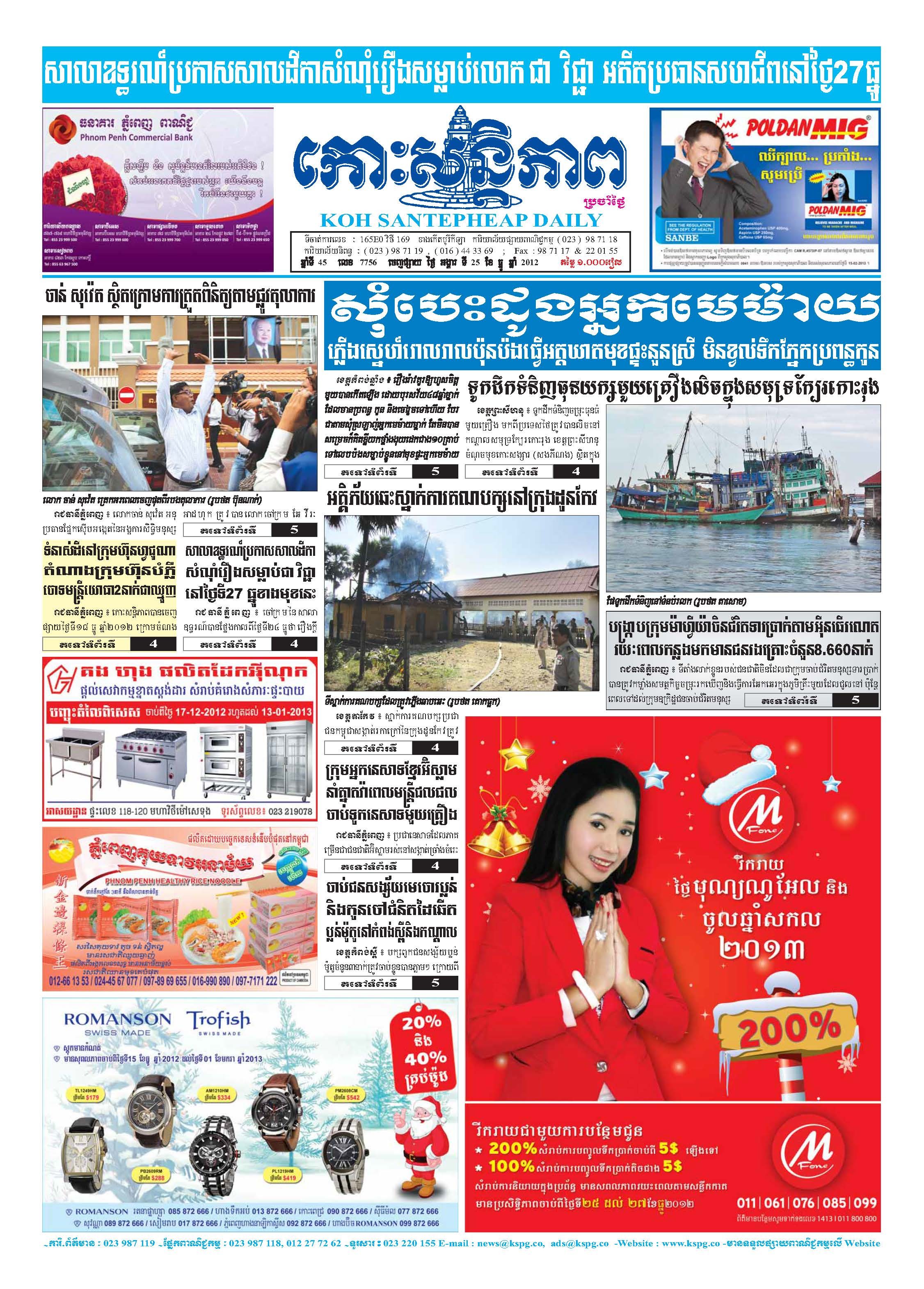 កោះសន្តិភាព ឆ្នាំទី៤៥ លេខ៧៦៧១ ចេញផ្សាយ ថ្ងៃព្រហស្បតិ៍ ទី១៣ ខែកញ្ញា ឆ្នាំ២០១២