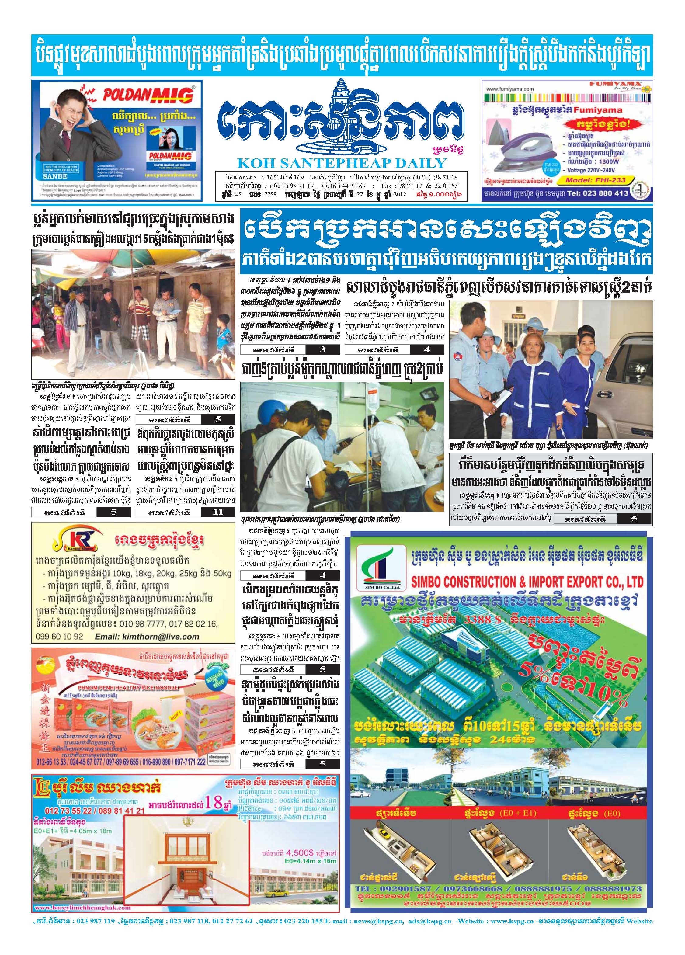 កោះសន្តិភាព ឆ្នាំទី៤៥ លេខ៧៦០៥ ចេញផ្សាយ ថ្ងៃព្រហស្បតិ៍ ទី២៨ ខែមិថុនា ឆ្នាំ២០១២