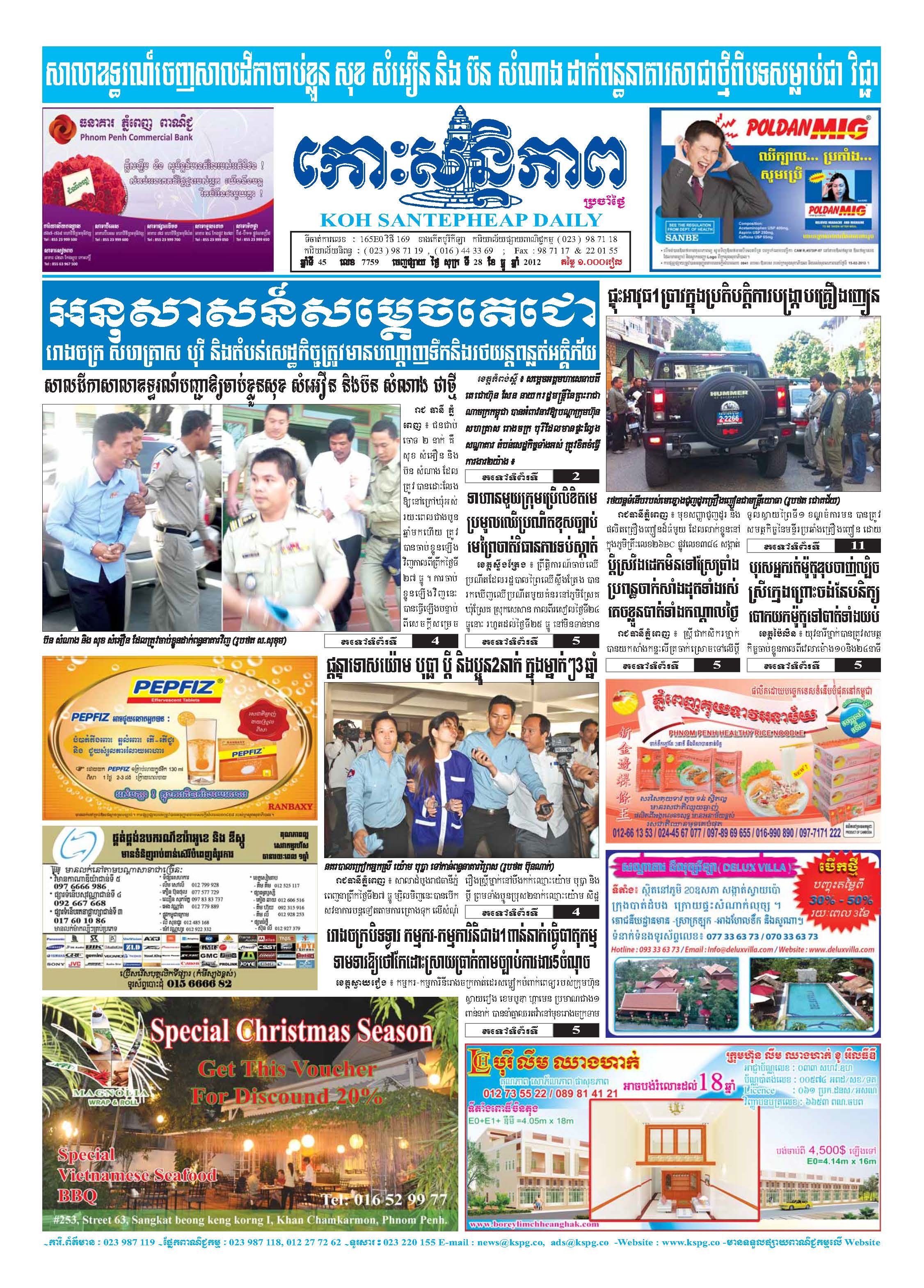 កោះសន្តិភាព ឆ្នាំទី៤៥ លេខ៧៧២៣ ចេញផ្សាយ ថ្ងៃសុក្រ ទី១៦ ខែវិច្ឆិកា ឆ្នាំ២០១២