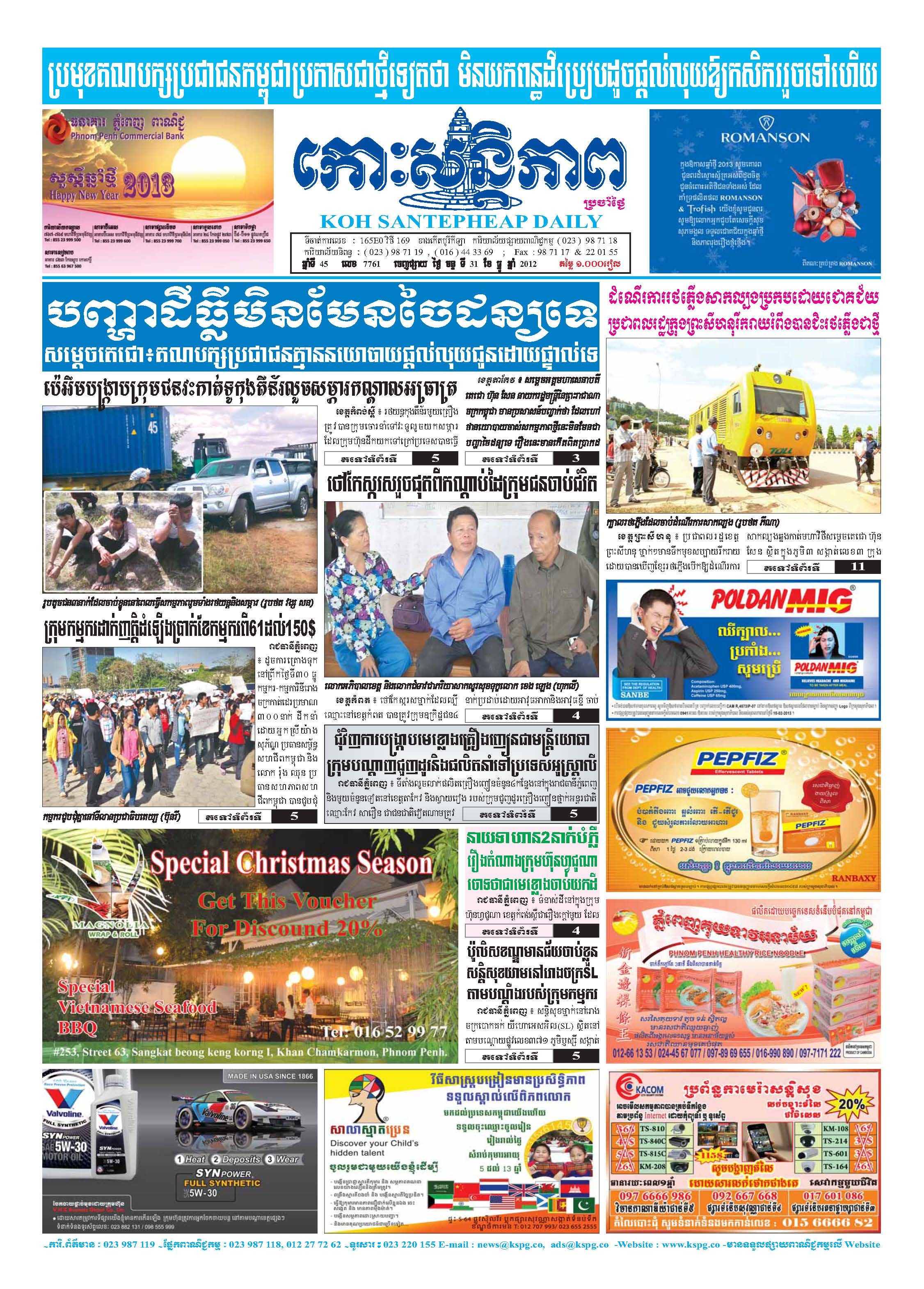 កោះសន្តិភាព ឆ្នាំទី៤៥ លេខ៧៧០៣ ចេញផ្សាយ ថ្ងៃពុធ ទី២៤ ខែតុលា ឆ្នាំ២០១២