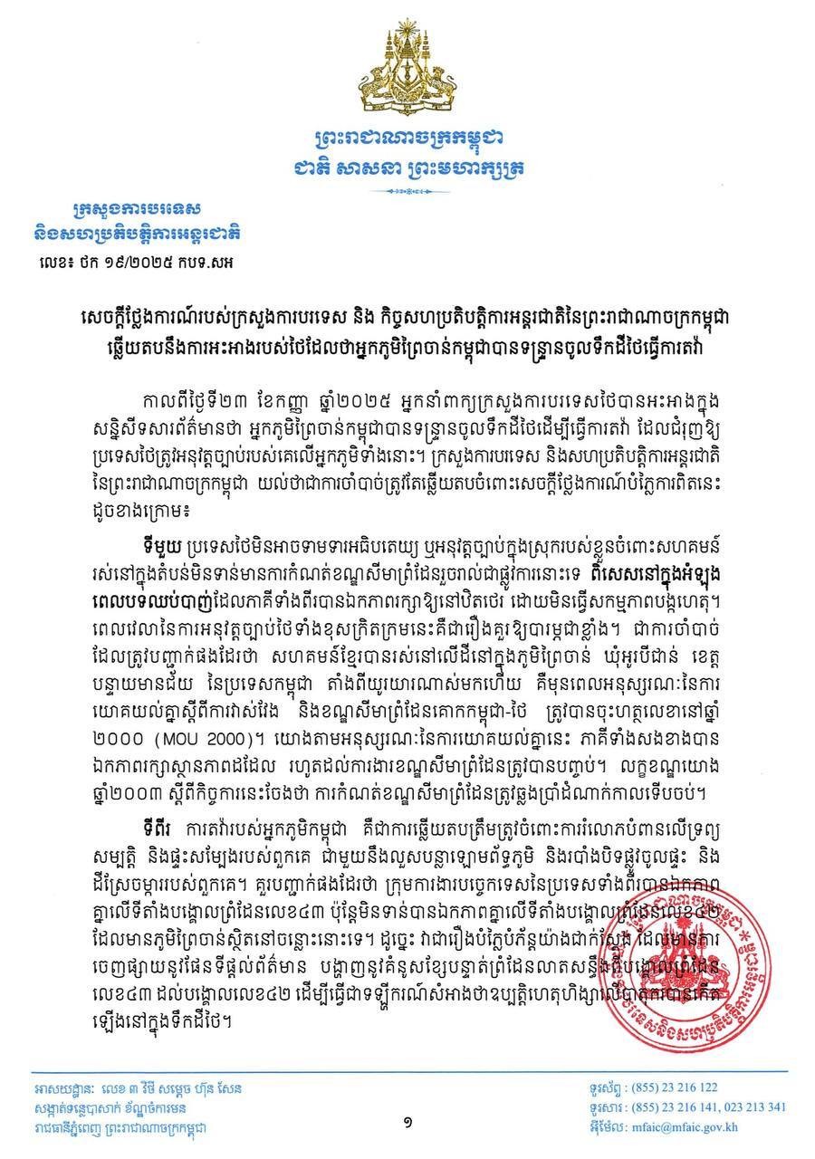 សេចក្តីសង្ខេបព័ត៌មាន ស្តីពី «លទ្ធផលនៃការអនុវត្តបទឈប់បាញ់រវាងកម្ពុជា-ថៃ» ថ្ងៃទី២២ ខែសីហា ឆ្នាំ២០២៥
