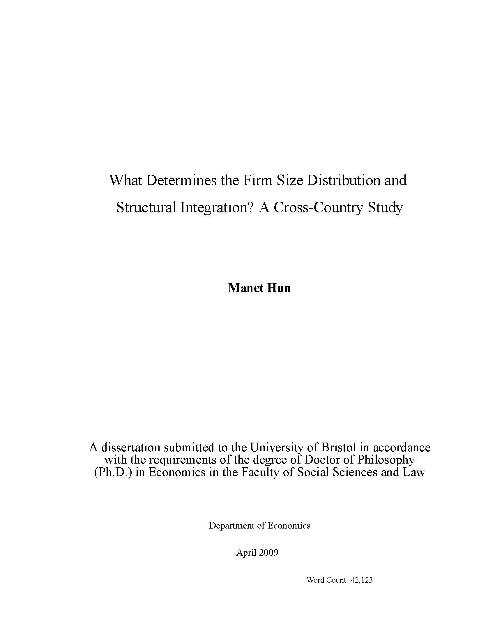 A dissertation submitted to the University of Bristol in accordance with the requirements of the degree of Doctor of Philosophy (Ph.D) in Economics i the Factulty of Social Sciences and Law